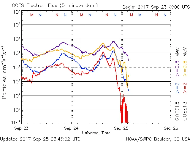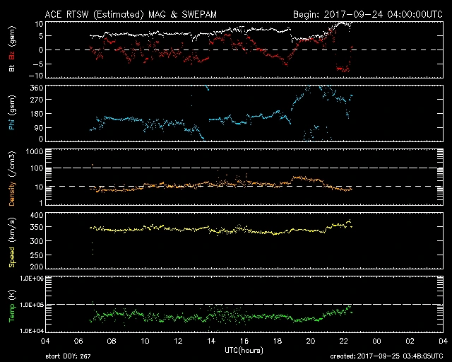 09/24 22時(UT)くらいから落ち込みはじめ23時(UT)以降は乱れが出ています。