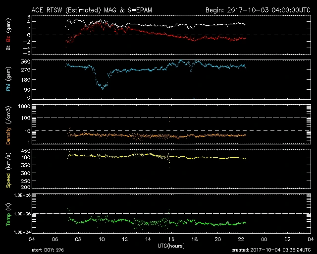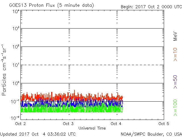 ややレベルが上がったままです。10/03 05時(UT)前後にピンポイントの反応がありました。