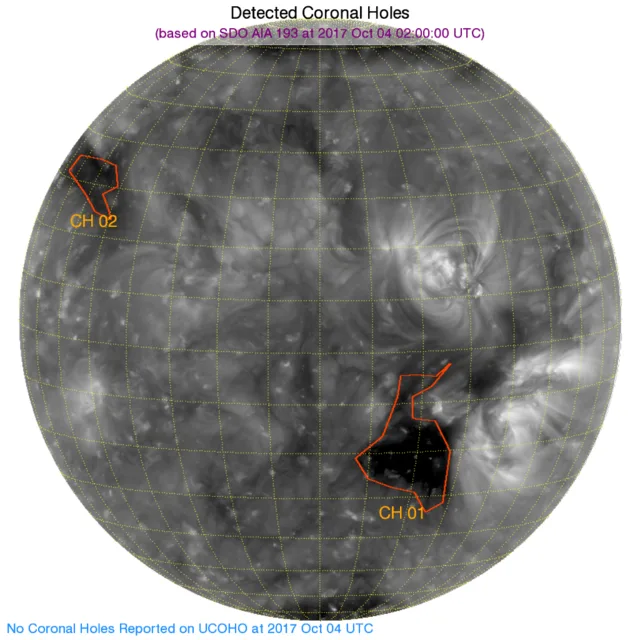 北半球東端に小さなコロナホールがカウントされました。