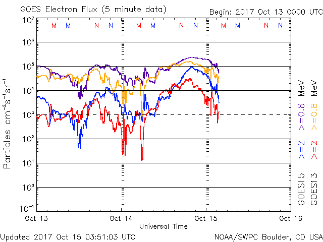 太陽フレアと黒点数(2017年10月15日更新)※無黒点7日目&コロナホール影響下