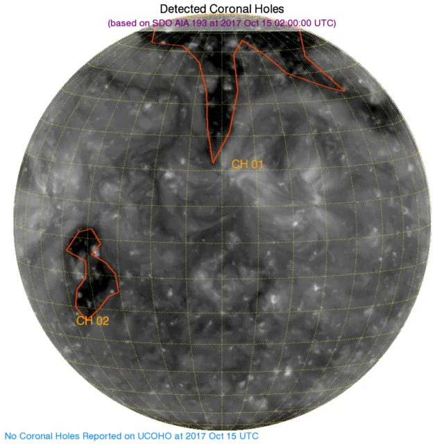 北の極から正面付近、北半球西側へ伸びる大きなコロナホールがカウントされました。