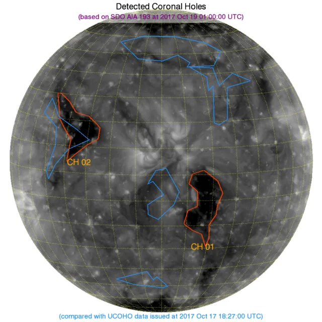 北の極付近、北半球西側のコロナホールはカウントされなくなりました。