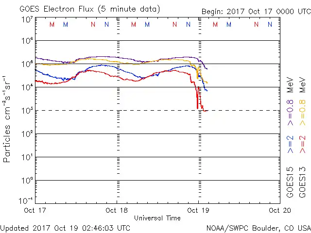 10/18 22時(UT)以降、落ち込み始めています。この後乱れが出るようなら要注意。