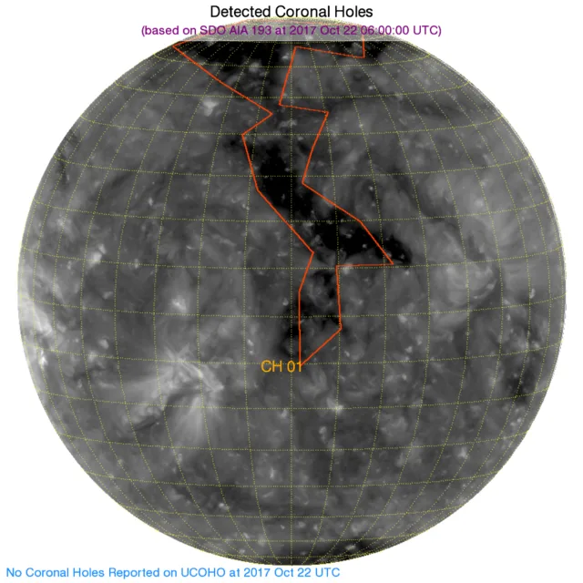 こちらのコロナホールの影響が24日くらいから届き始めるかも