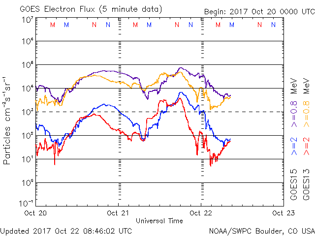 10/21 22時(UT)頃に少し反応があったと、10/22 03時(UT)前後に小さな反応がありました。