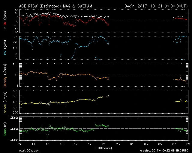 速度は少し下がり、現在は420km/s前後で推移しています。