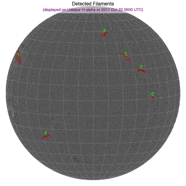 ※フィラメント:北半球西側と北半球東端、南半球東側に小さなフィラメントが点在しています。