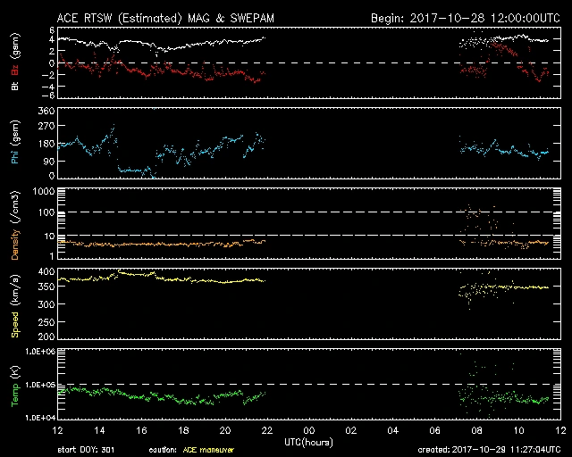 速度は緩やかに下がり続け、現在は340km/s前後で推移しています。