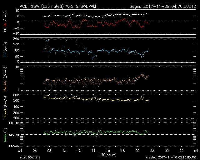一時510km/s前後まで下がりましたが、また少し上がり、現在は540km/s前後で推移しています。(速度にはバラツキあり)