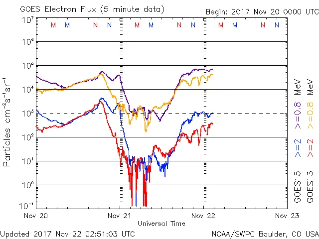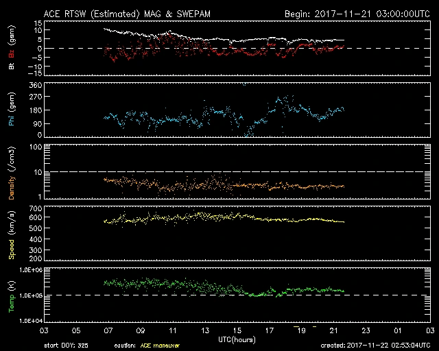 11/20 18時(UT)くらいから落ち込みはじめ、11/21 08時(UT)くらいまで強い乱れがありました。