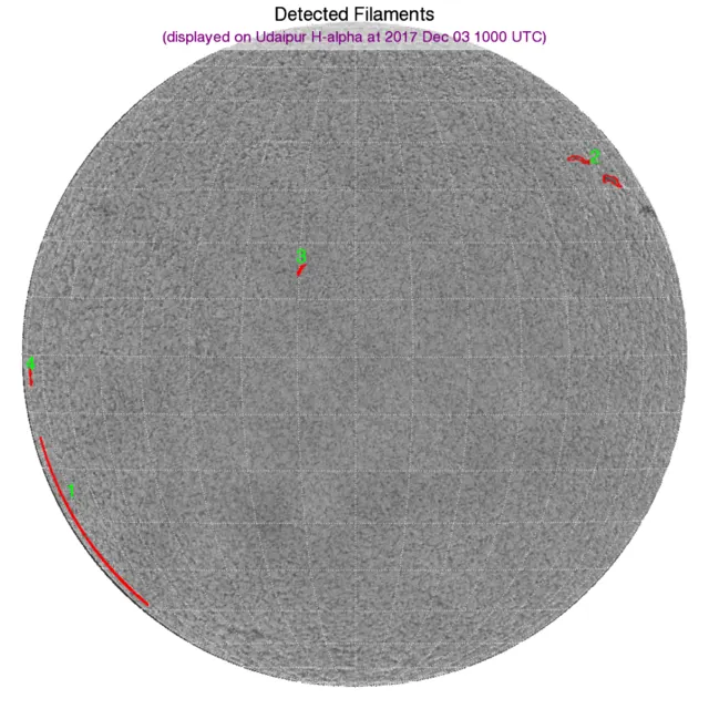 ※フィラメント:北半球西端と北半球東寄りに小さなフィラメントが浮いています