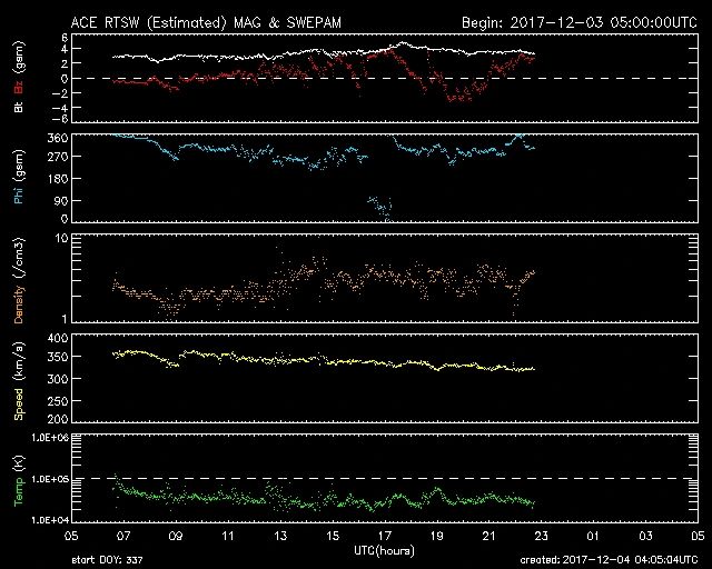noaaのデータでは昨晩9時頃から速度が落ち、現在320km/s前後で推移しています。