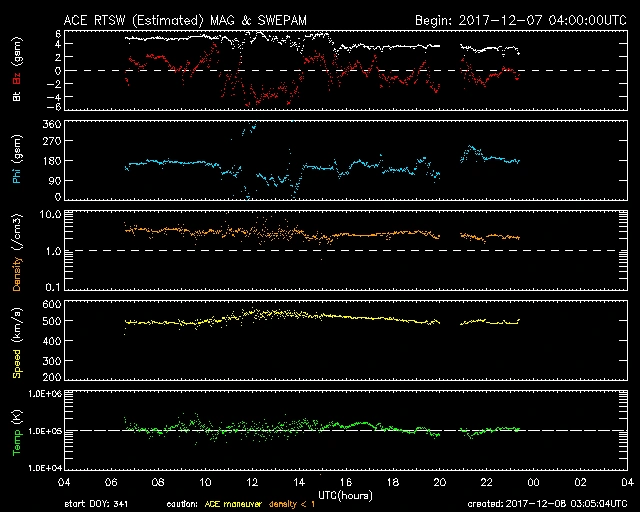 一時550km/s前後まで上がりましたが下がり続け、現在は470km/s前後で推移しています。