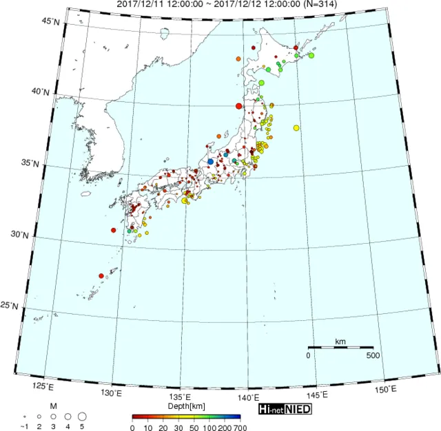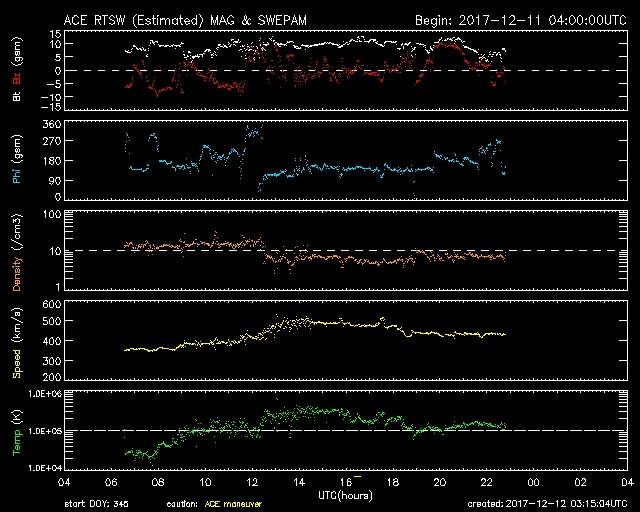 概ね穏やかなラインですが、12/11 03時(UT)くらいから下降し、12/12 03時(UT)前に強い反応が出ました。
