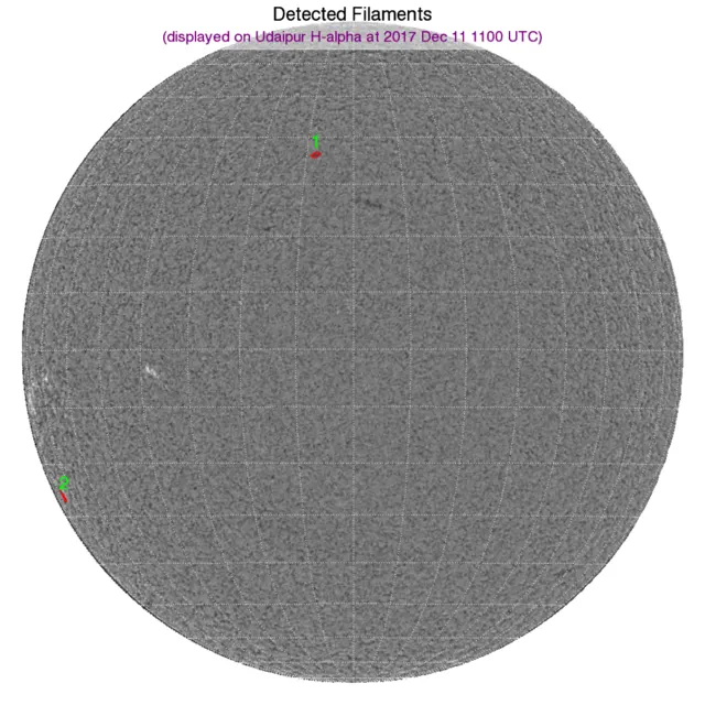 ※フィラメント:北半球東寄りと南半球東端に小さなフィラメントが浮いています。