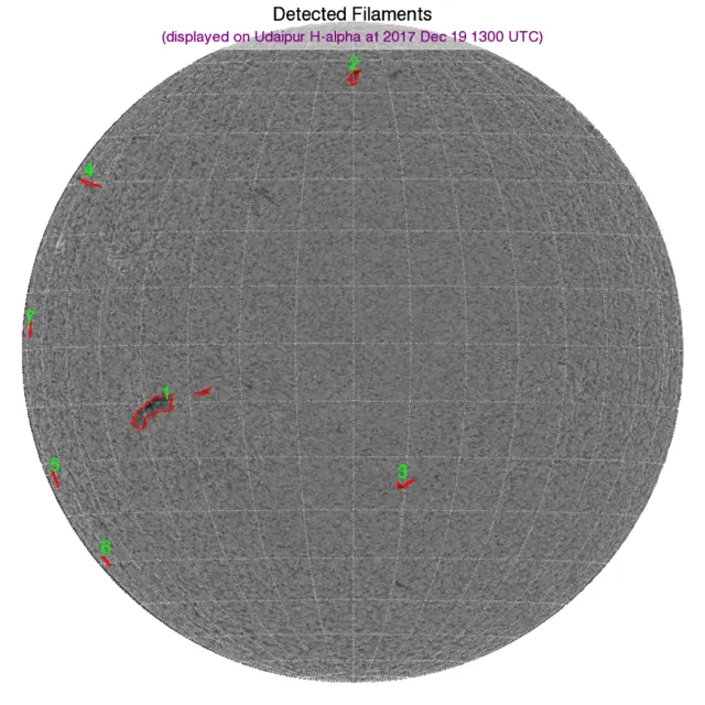 ※フィラメント:曲近くの正面付近、南半球西寄りと東端に小さなフィラメントが浮いています。