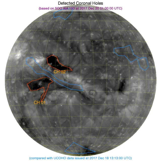 このコロナホールの南側(南半球側)に新しいコロナホールがカウントされました。