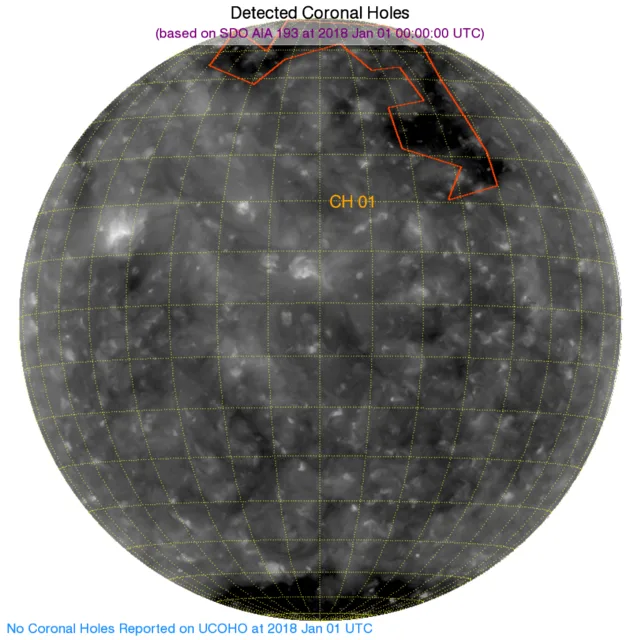 このコロナホールの影響が元旦から2日にかけて届き始めるかも