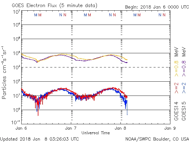 やや幅のあるラインが続いています。01/08 03時(UT)過ぎに反応があります。