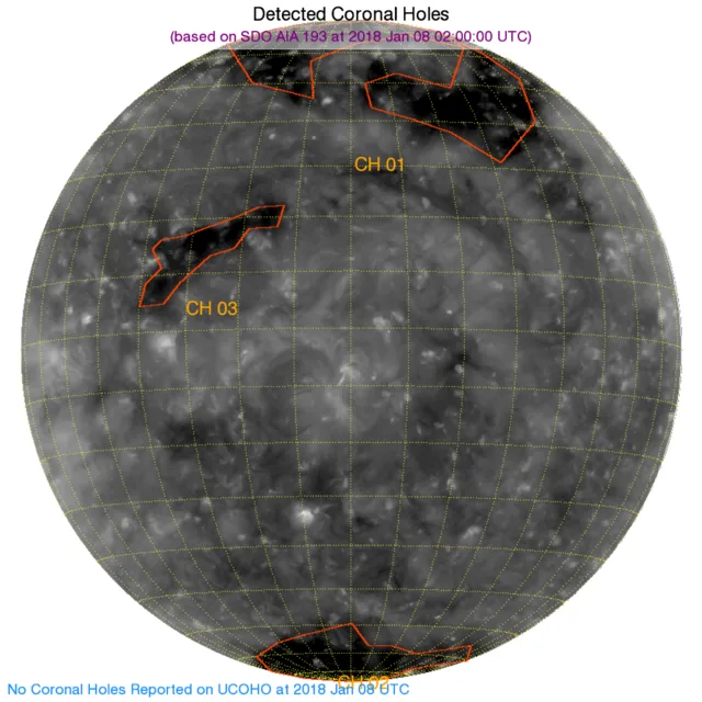 北半球東側に新しいコロナホールがカウントされました。(全部で4つ)