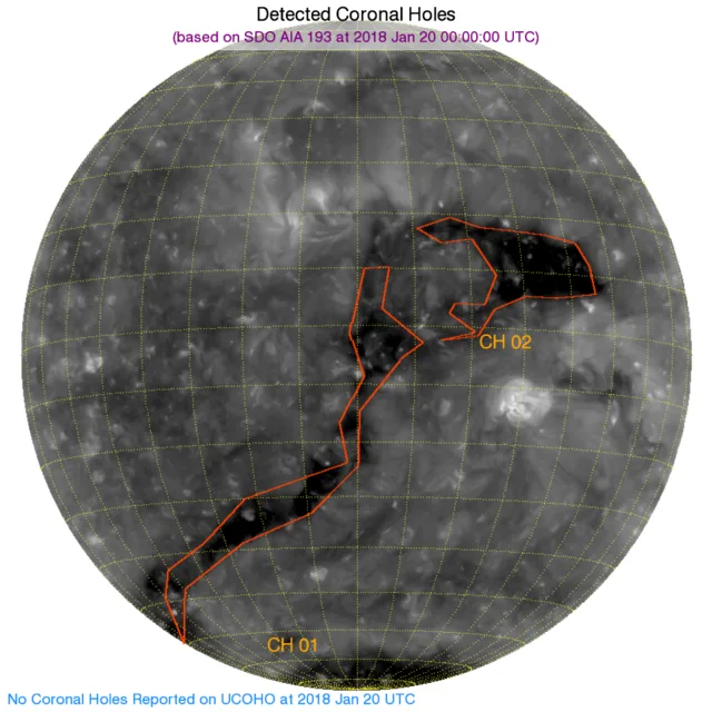 ほぼ正面辺りから、南半球極付近東端まで伸びる細長いコロナホールがカウントされました。