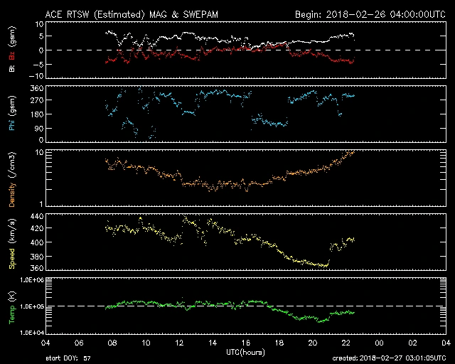 380km/s前後で推移していましたが、一時470km/s後まで上がりました。現在440km/s前後で推移しています。