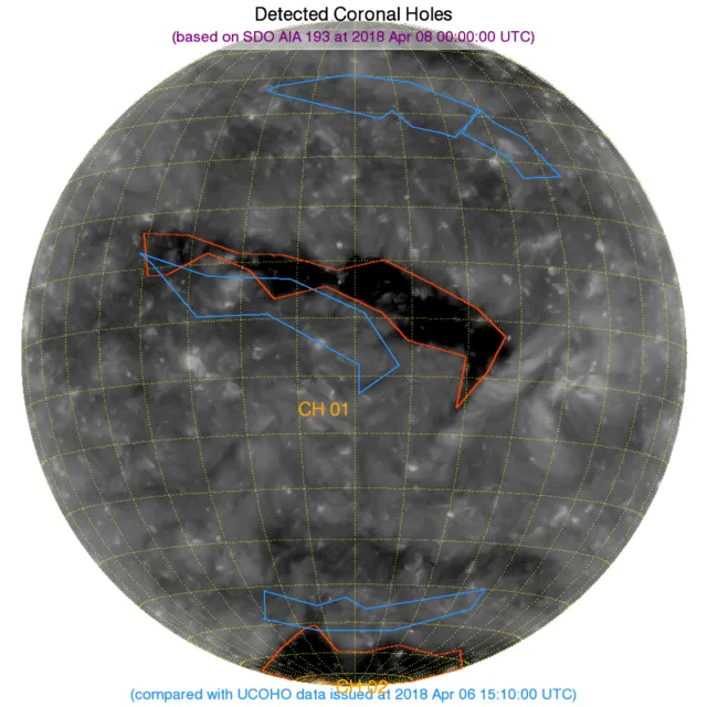 南の極と赤道付近のコロナホールが再びカウントされました。