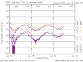 310km/s前後で推移していましたが、NOAAでは21時頃から480km/s台のやや高速な太陽風が観測されています。