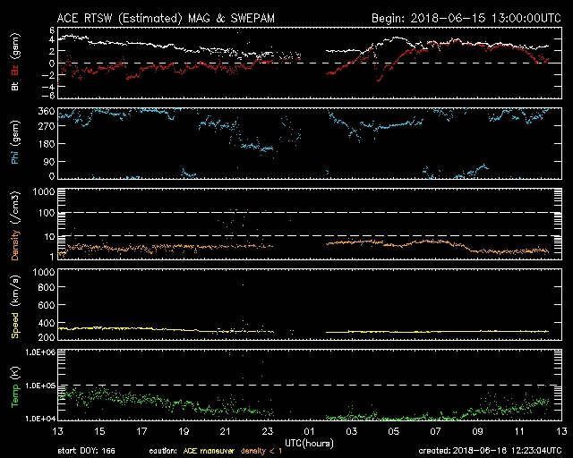 310km/s前後で推移していましたが、NOAAでは21時頃から480km/s台のやや高速な太陽風が観測されています。