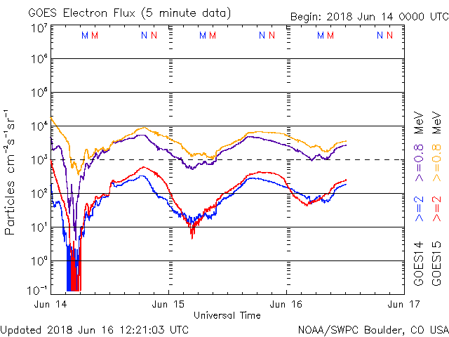 太陽フレアと黒点数(2018年06月16日更新) ※コロナホールの影響?