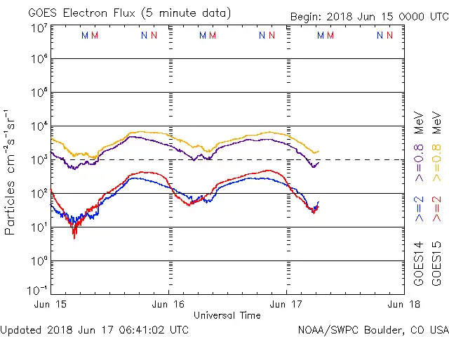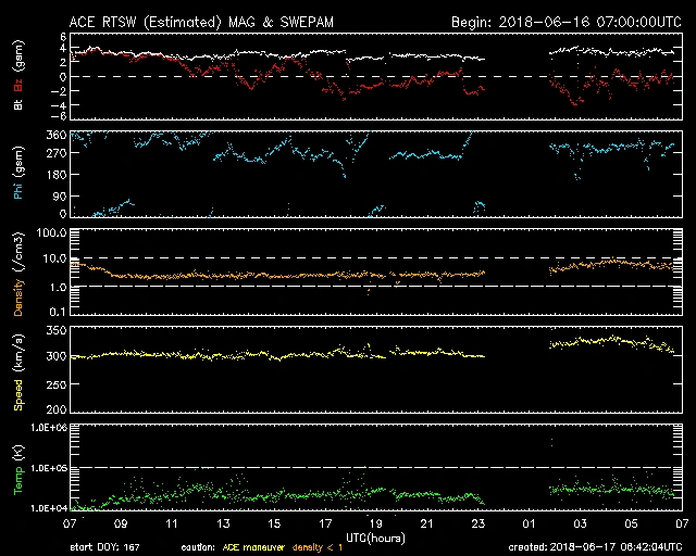 NOAAのチャートでは、ベースは310km/s前後ですが時折750km/s前後の突風が吹いているようです。