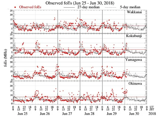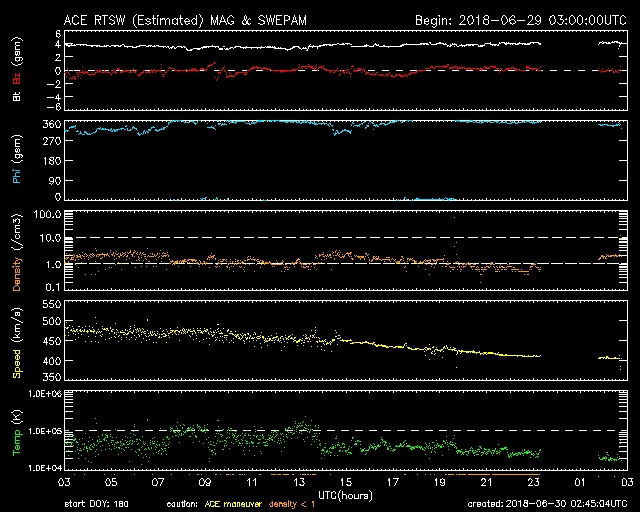 06/29 04時(UT)くらいに極小さな反応がありましたが、それ以外に大きな乱れや反応は出ていません。
