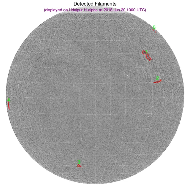 ※フィラメント:北半球西側、南半球東端と東寄りフィラメントが浮いています。