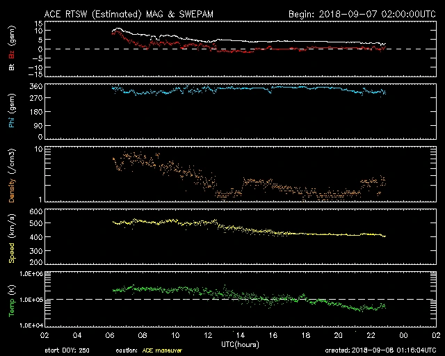 一時520km/s前後まで上がりましたが徐々に下がり、400km/s前後で推移しています。
