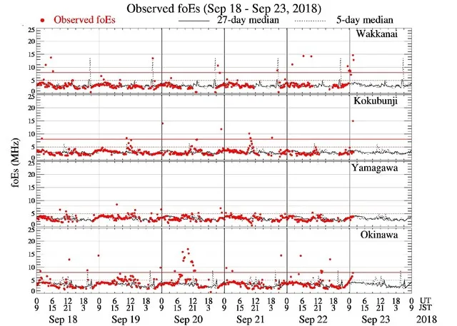 09/21 23時(UT)過ぎから急激に落ち込み、09/22 12時(UT)頃まで激しい反応が続きました。