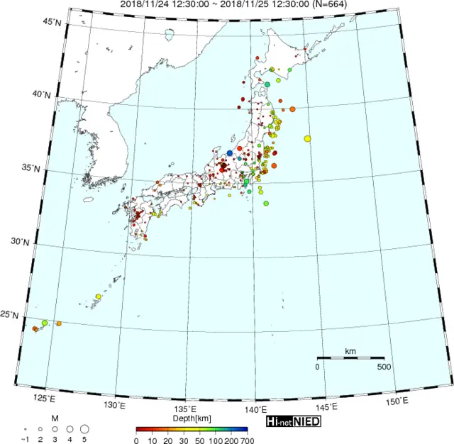 ●Hi-net日本地震分布(過去24時間)