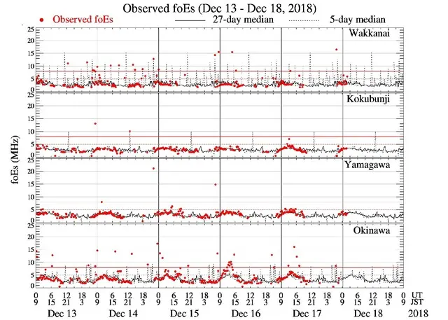 穏やかな推移でしたが、12/17 20時(UT)くらいから下降し始め、UTで18日になった頃から少し反応があります。