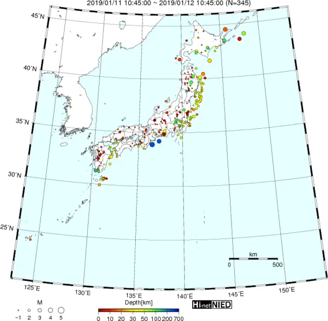 ●Hi-net日本地震分布(過去24時間)・・・小笠原のデータは掲載日がずれて反映されるようです(翌々日に掲載)