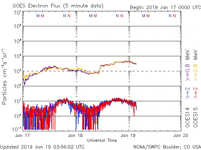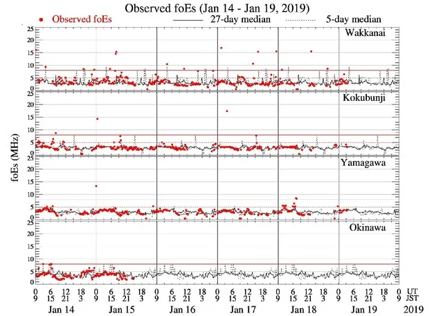 01/18 ~10時(UT)過ぎまで強い反応がありました。01/19 03時(UT)頃にも反応が出ています。