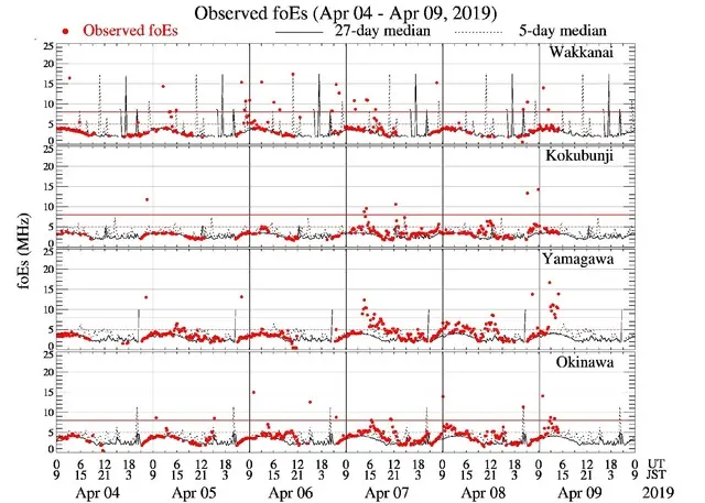 04/08 ~11時(UT)頃までいくつか強い反応がありました。