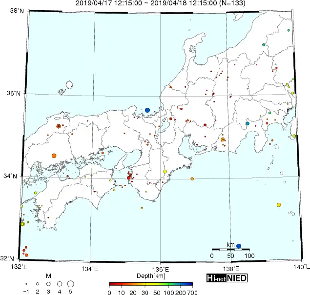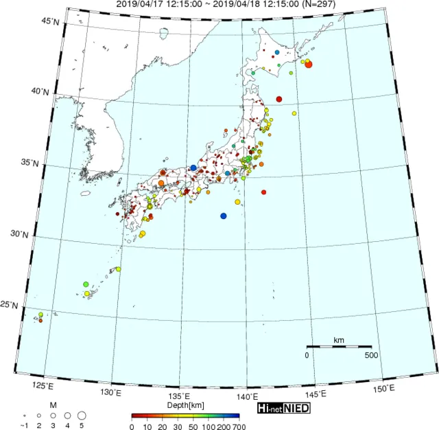 ●Hi-net日本地震分布(過去24時間)・・・小笠原のデータは掲載日がずれて反映されるようです(翌々日に掲載)