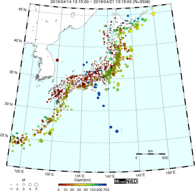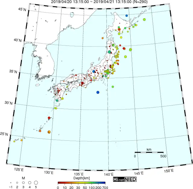 ●Hi-net日本地震分布(過去24時間)・・・小笠原のデータは掲載日がずれて反映されるようです(翌々日に掲載)
