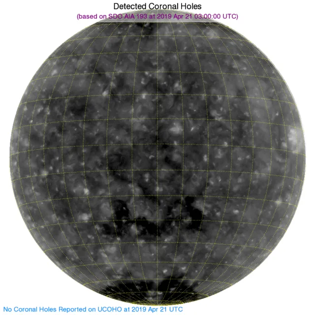 現時点で地球正面の黒点群はありません。←黒点番号が振られていない活動領域でもフレアは発生しますので、あくまで目安として捉えてください。