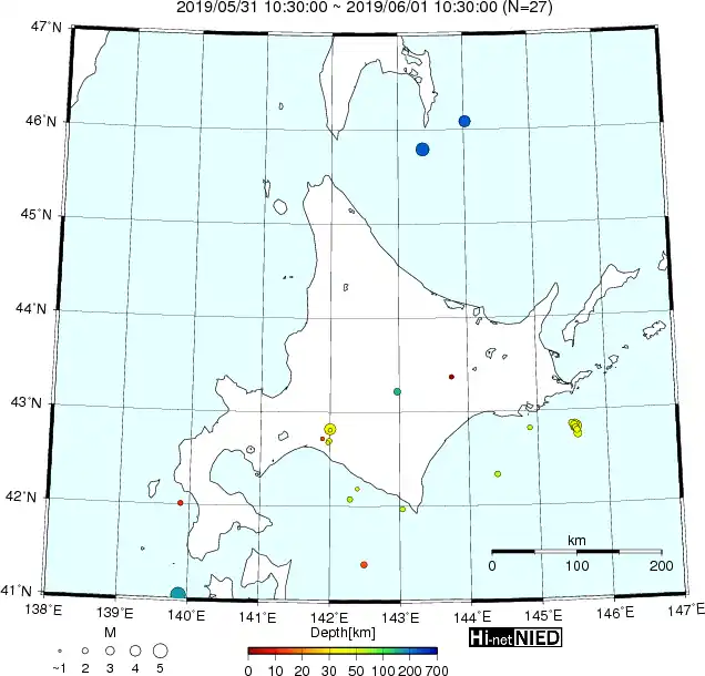 ●Hi-net日本地震分布(過去24時間)・・・小笠原のデータは掲載日がずれて反映されるようです(翌々日に掲載)