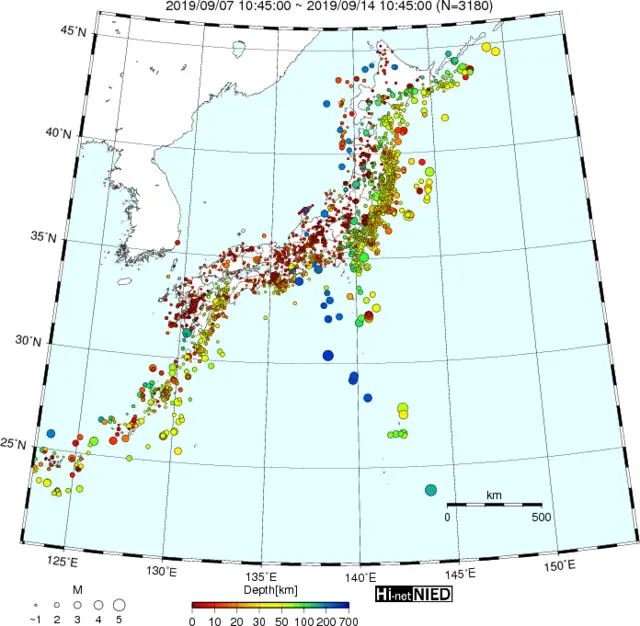 ●Hi-net日本地震分布(過去24時間)・・・小笠原のデータは掲載日がずれて反映されるようです(翌々日に掲載)