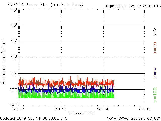 X線チャートのレベルは、前日と同等で低い状態です。フレアは発生していません。