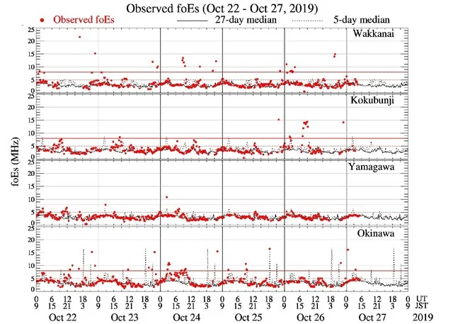 所々小さな反応があり、10/26 06時(UT)前後にやや強い反応がありました。