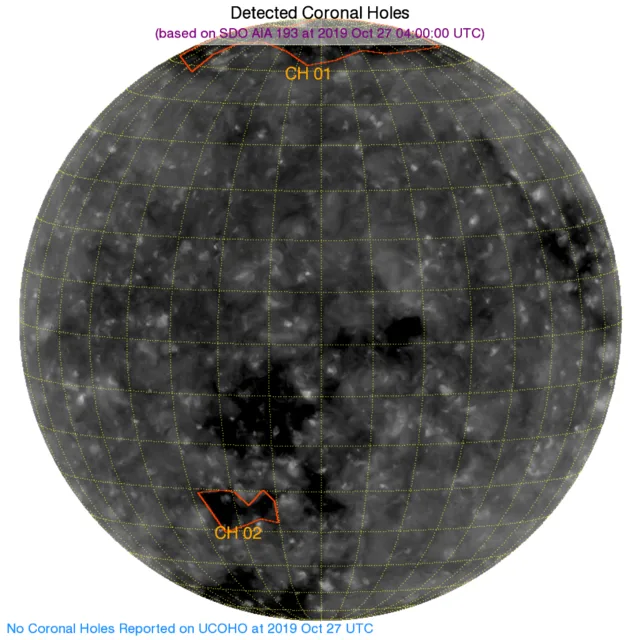 北の極にコロナホールがあります。西側にあったコロナホールは消滅しました。