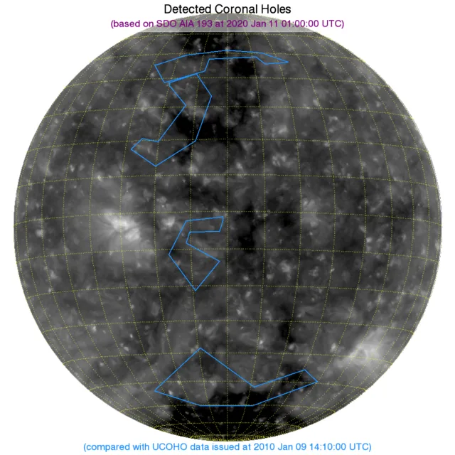 現時点で地球正面の黒点群はありません。←黒点番号が振られていない活動領域でもフレアは発生しますので、あくまで目安として捉えてください。