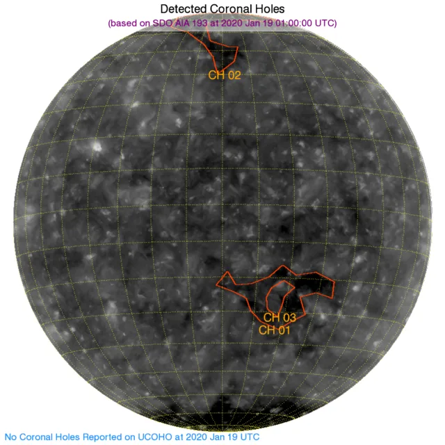 南半球西寄りにコロナホールがあります。こちらの影響が20日くらいから届くかも